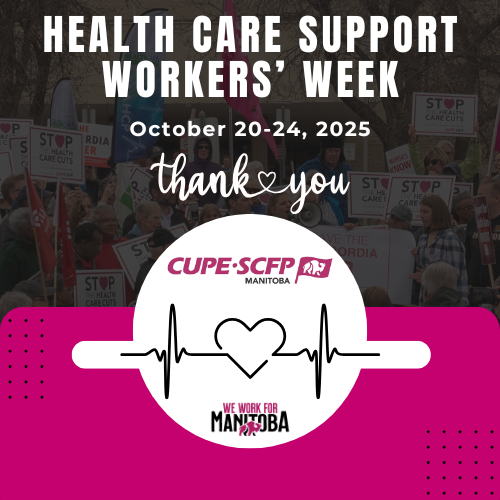 Healthcare support workers are the backbone of our healthcare system. Your efforts ensure that patients, residents, and families receive the quality care they deserve. CUPE Manitoba proudly celebrates your commitment to making Manitoba’s healthcare system stronger, safer, and more inclusive.