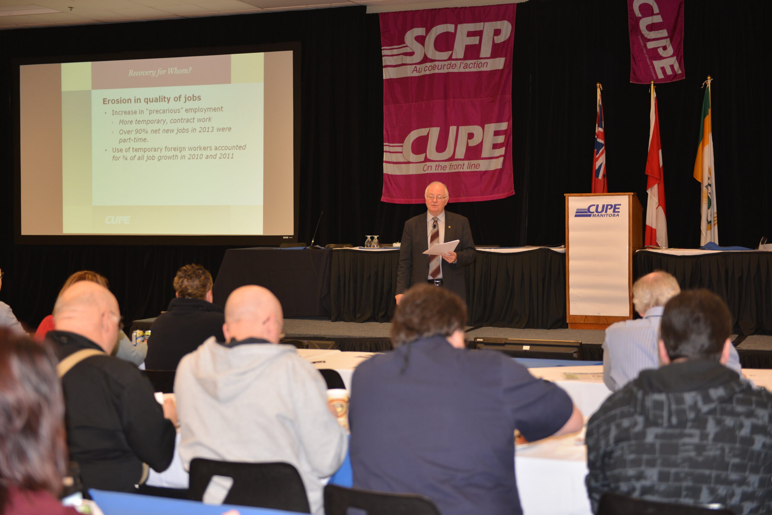 Special guest speakers included the Premier of Manitoba, Greg Selinger, the Mayor of Brandon, Shari Decter Hirst, Jan Chaboyer, 1st Vice-President, Brandon Labour Council, Denis Bolduc, General Secretary of SCFP Quebec, and Tom Graham, President of CUPE Saskatchewan.