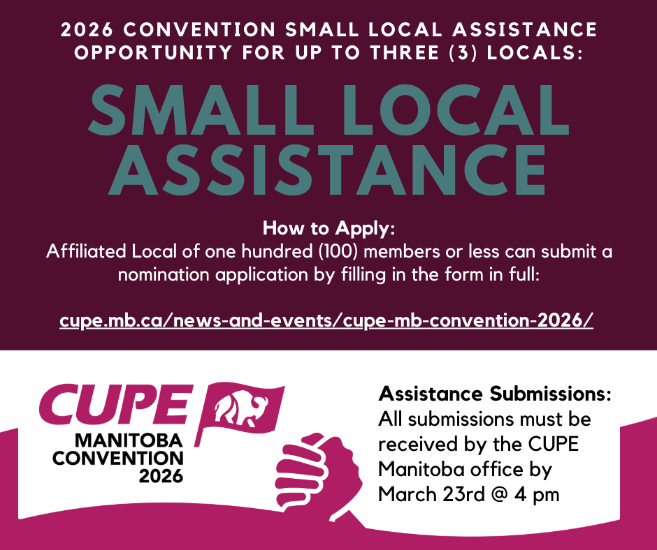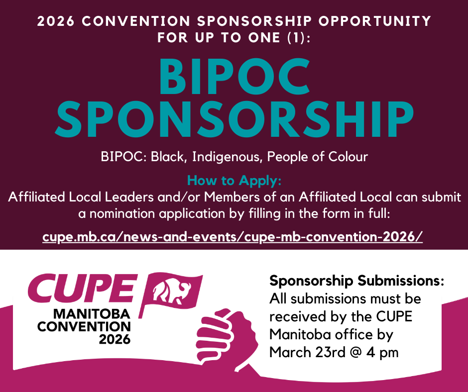 The selection for this year’s recipient will be made by the CUPE Manitoba selection committee and will be announced on the floor of the 2026 CUPE Manitoba Convention.